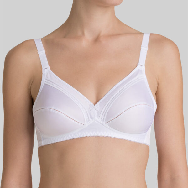 Biustonosz z miękkimi miseczkami bez fiszbin, delikatnie modelujący biust. Miseczki posiadają poziome cięcie. Model wzmocniony elastycznymi fiszbinami bocznymi. Pomiędzy miseczkami ozdobna kokardka. Ramiączka regulowane z przodu. Model zastępuje Elastiform Stretch N.Skład:95% poliamid, 5% elastan