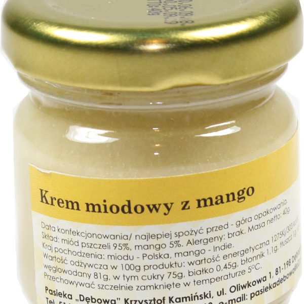 Jak wszyscy dobrze wiemy, naturalny miód pod wpływem czasu zmienia się w stałą konsystencję z grubymi i twardymi kryształkami. Aby ułatwić nabieranie miodu na łyżeczkę, powstał proces tak zwanego kremowania, który podczas mieszania/ucierania rozdrabnia kryształki miodu aż do uzyskania kremowej konsystencji natomiast nie pozbawia go jakości i niepowtarzalnego smaku. Dodatek tropikalnego, słodkiego mango sprawi, że miód idealnie będzie się komponował jako dodatek do wielu dań i napojów. Wybornie smakuje również sam!